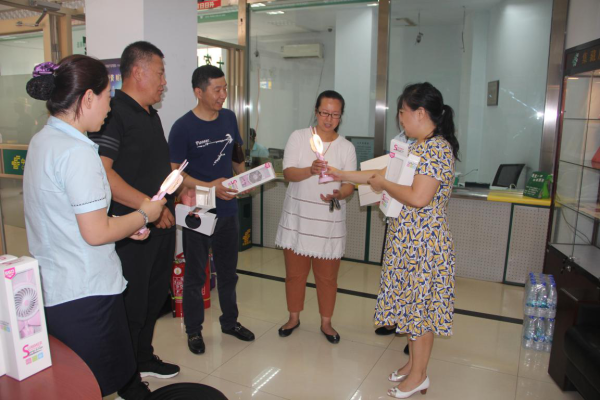 市分公司副總經(jīng)理兼工會主席魏亞峰率工會副主席李洪彬等先后慰問了愛民郵政支局、橋北郵政支局和愛民投遞部,親手把精美實用的小風扇發(fā)放到職工手中,并當場給職工們演示小風扇的功能和如何使用,并詢問了解職工的工作生活情況,悉心囑咐職工們要注意防暑,勞逸結(jié)合,讓所有的職工們深受感動。收到慰問品的職工們都特別高興,一致稱贊市分公司工會發(fā)放的風扇即實用又美觀,還能當個小臺燈,員工們拿著風扇個個愛不釋手,每個員工的臉上都洋溢著甜甜的笑容。市分公司蔡寶偉副總經(jīng)理率人力資源主任鞏福興、副主任郭鐳等先后慰問了陽明郵政支局、7個投遞部、信息技術中心和機要通信分局,為他們送去了精美實用小風扇和礦泉水,為職工們吹去了汗水,暖了人心!蔡寶偉副總經(jīng)理每到一處都詳細詢問了網(wǎng)點收入和經(jīng)營情況,對陽明中心營業(yè)所現(xiàn)場擺放銷售的分銷產(chǎn)品的銷售情況和價格情況進行了了解,對柜員收寄包裹嚴格驗視給予了充分肯定,對郵務網(wǎng)點進度排名第一給予高度評價。耿洪民副總經(jīng)理率市場營銷部主任孫振波等先后慰問了西安區(qū)分公司和東安區(qū)分公司網(wǎng)點,為網(wǎng)點職工們送去了企業(yè)的關懷、精美實用小風扇和礦泉水。耿洪民副總經(jīng)理每到一處網(wǎng)點都仔細詢問網(wǎng)點業(yè)務發(fā)展情況,業(yè)務發(fā)展中的阻力以及職工在生產(chǎn)生活中遇到的困難等,并囑咐大家在高溫天氣下工作一定注意身體,多喝綠豆水等飲品清涼止渴,在確保安全生產(chǎn)的前提下,保證各項業(yè)務正常有序發(fā)展。