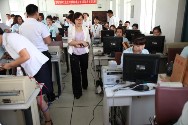 遼陽市分公司對本次技能比賽予以了高度的重視,從各機(jī)關(guān)部門共抽調(diào)30余人作為此次大賽的裁判,旨在盡可能的為參賽選手營造一個(gè)公平、公正、嚴(yán)肅的競技環(huán)境。從初賽中脫穎而出的57名參賽選手,在“打字、點(diǎn)鈔、憑條錄入、綜管系統(tǒng)及業(yè)務(wù)處理”五個(gè)環(huán)節(jié)中同臺(tái)競技、各展其能。經(jīng)過一下午的激烈角逐,分別評(píng)選出各單項(xiàng)獎(jiǎng)前五名及全能獎(jiǎng)前十名,其中全能獎(jiǎng)第一名被太子河區(qū)分公司旗倉支局吳迪斬獲。賽后,劉副總、徐副總共同為各獲獎(jiǎng)選手頒獎(jiǎng)。