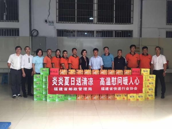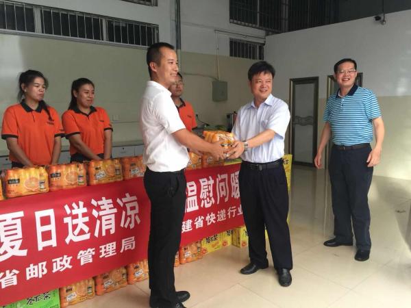 8月14日下午,福建省郵政管理局、福建省快遞行業(yè)協(xié)會領(lǐng)導(dǎo)一行來到福州市分公司五四北攬投部進(jìn)行“送清涼”高溫慰問。