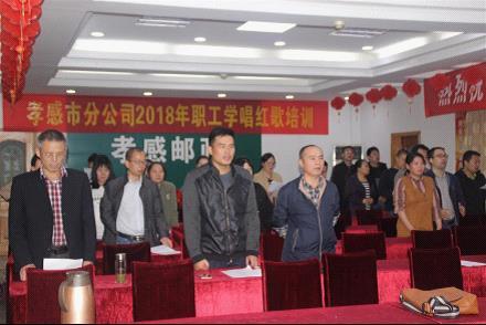 為進一步弘揚紅色文化,增強廣大職工愛黨、愛國、愛企的責任意識,豐富教育活動形式,11月1日,孝感市郵政工會組織職工開展學唱紅歌活動。 市郵政工會邀請了孝感市音樂家協(xié)會副主席黃友權(quán)進行輔導,職工們興趣很高,學唱《咱們工人有力量》,高亢激昂歡快的曲調(diào)和贊歌,唱出了新時代孝感郵政職工的熱情和奉獻精神。為了把唱紅歌活動組織的有聲有色,市郵政工會號召全市郵政同步開展,確定經(jīng)典紅歌《咱們工人有力量》、《我宣誓》等主要曲目,在全市郵政掀起了唱紅歌、頌黨恩、昂士氣,振奮孝感郵政精神的熱潮。