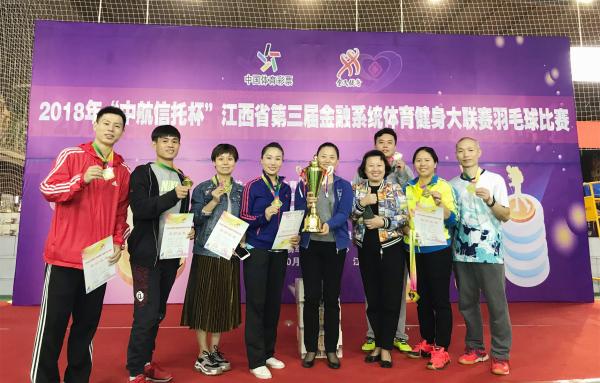 11月14日,江西郵儲(chǔ)銀行代表團(tuán)結(jié)束了其在2018年全省第三屆金融系統(tǒng)體育健身大聯(lián)賽上歷時(shí)三個(gè)月的全部賽事征程,在本次參加的全部比賽項(xiàng)目中成績(jī)斐然、碩果累累,榮獲羽毛球團(tuán)體比賽冠軍及混雙、男雙、女雙三個(gè)單項(xiàng)冠軍,登山項(xiàng)目團(tuán)體二等獎(jiǎng)、足球比賽項(xiàng)目季軍等多個(gè)獎(jiǎng)項(xiàng),刷新了在該分行在歷屆全省金融系統(tǒng)體育賽事上的最好成績(jī),并成為榮獲本屆賽事優(yōu)秀組織獎(jiǎng)的兩個(gè)單位之一。