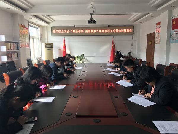 為深入貫徹落實北京市總工會《關(guān)于開展“尊法守法·攜手筑夢”服務(wù)農(nóng)民工公益法律服務(wù)行動的通知》精神,進一步做好新形勢下為農(nóng)民工法律服務(wù)工作,北京郵政懷柔區(qū)分公司工會于11月12日組織部分職工開展“尊法守法·攜手筑夢”服務(wù)農(nóng)民工公益法律知識答題活動。