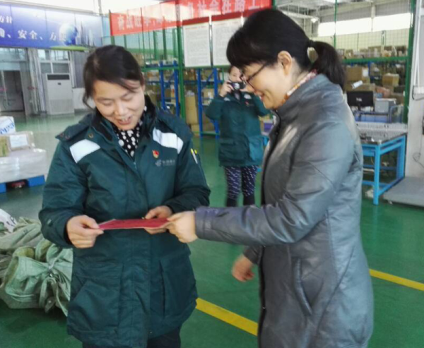 春節(jié)將至,時(shí)值合肥郵區(qū)中心局節(jié)前生產(chǎn)旺季,1月25日下午,該局工會(huì)主席蒲春文副總經(jīng)理深入基層走訪慰問(wèn)堅(jiān)守在一線的網(wǎng)運(yùn)職工。蒲總先后看望了困難職工孫海疆、陳俊和省級(jí)勞動(dòng)模范劉玉梅,詢問(wèn)他們的工作和生活狀況,向大家表示深深的謝意和節(jié)日的問(wèn)候,并希望大家再接再厲加油干!為建設(shè)全國(guó)最好省會(huì)郵區(qū)中心局,打造全國(guó)郵政網(wǎng)路運(yùn)行最佳實(shí)踐作出新的貢獻(xiàn)!