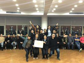 活動分成五個(gè)小組,分別完成“抱團(tuán)打天下”、 “眾志成城”、 “烽火傳密”三項(xiàng)活動?!氨F(tuán)打天下”中,小組成員們集思廣益,通過推選隊(duì)長,確定隊(duì)名、選擇隊(duì)歌、設(shè)計(jì)團(tuán)隊(duì)造型及制作團(tuán)隊(duì)海報(bào)一一展示了團(tuán)隊(duì)形象;“眾志成城”活動中,大家團(tuán)結(jié)一致、齊心協(xié)力,在小小的一方報(bào)紙上打破陌生感與隔閡感,盡顯團(tuán)隊(duì)協(xié)調(diào)能力、團(tuán)隊(duì)溝通技巧;“烽火傳密”活動中,五個(gè)小組緊張又激烈地討論游戲方式,各顯其招,用行之有效的方法將數(shù)字傳遞給前排伙伴,用時(shí)越短的小組得分越高。