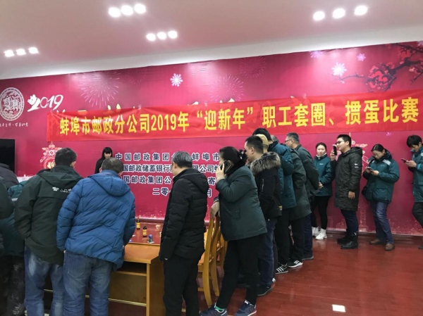 為了迎接新年的到來(lái),豐富員工的業(yè)余文化生活,積極營(yíng)造健康良好的工作氛圍,活躍員工身心,2月1日下午,蚌埠市郵政分公司在大會(huì)議室舉辦“迎新年”職工套圈、摜蛋活動(dòng)。來(lái)自公司各部門的100余人參加了此次活動(dòng)。