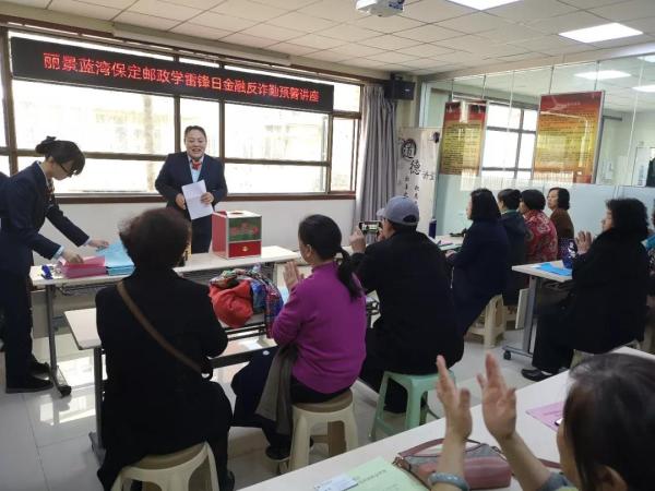 保定市分公司與麗景藍(lán)灣社區(qū)辦聯(lián)合舉辦“學(xué)雷鋒送溫暖暨金融反詐騙預(yù)警”便民服務(wù)活動(dòng),為社區(qū)居民便民服務(wù)普及金融知識(shí)。