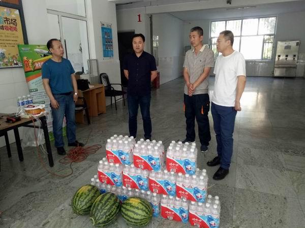 入夏以來,白城市持續(xù)出現(xiàn)高溫酷暑天氣,又恰逢校園包裹收寄戰(zhàn)役關(guān)鍵時期,為看望慰問奮戰(zhàn)在包裹收寄現(xiàn)場的一線員工,6月19日,白城市郵政工會主席姬忠友、副主席焦明帶著慰問品,來到白城市師范學(xué)院包裹收寄現(xiàn)場,為一線員工送去了礦泉水、西瓜等慰問品。