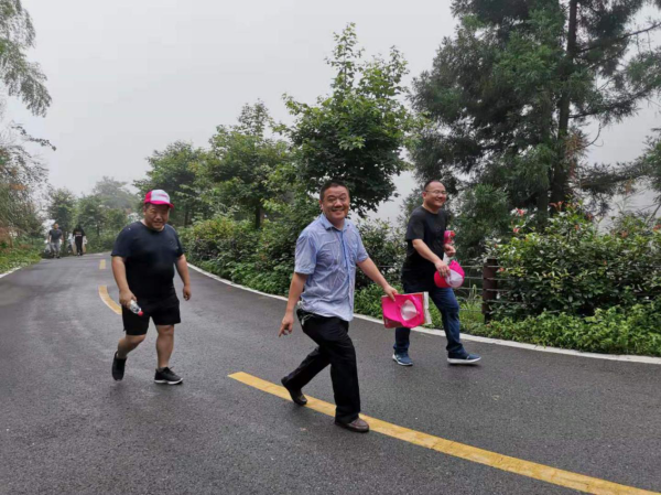活動分為五個小組,各小組整齊列隊,大家精神飽滿、整裝待發(fā)。工會主席彭主席一下出發(fā)令,全體人員爭先恐后,在彩旗引領(lǐng)下開始向山頂進(jìn)發(fā)。