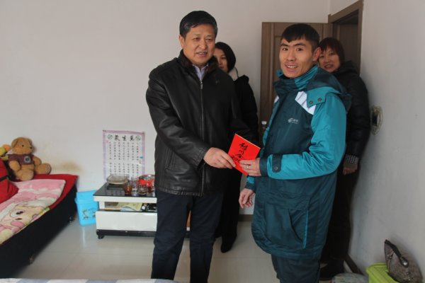 嚴冬送溫暖,關(guān)愛系真情。新春佳節(jié)之際,省、市分公司領(lǐng)導(dǎo)班子時刻惦掛一線員工,為了讓他們過上一個歡樂、祥和、美滿的新春佳節(jié),1月21日,齊齊哈爾市公司黨委書記、總經(jīng)理郝福海,工會主席任麗杰,工會副主席王新紅代表省郵政工會領(lǐng)導(dǎo)冒著寒風,帶著慰問品、慰問金,來到龍江縣分公司慰問全國勞動模范、困難職工及一線員工,送來黨和企業(yè)對職工的關(guān)懷和新春祝福。