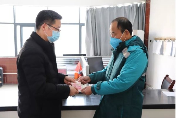 1月30日下午4時(shí),巢湖郵政局散兵支局鄭愛軍來到散兵鎮(zhèn)人民政府辦公室,向工作人員遞過2000元現(xiàn)金。