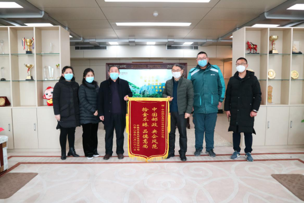 3月5日上午,安徽華康醫(yī)藥集團(tuán)有限公司財(cái)務(wù)部經(jīng)理?xiàng)畛?,將一面“中國郵政 央企風(fēng)范 拾金不昧 品德高尚”的錦旗送到宿州郵政分公司,對攬投員耿子龍拾金不昧的行為表示感謝。