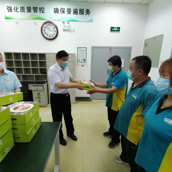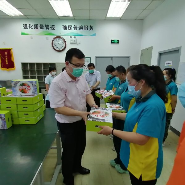 夏至已至,天氣漸熱。6月22日,一箱箱承載著朝陽郵政工會端午祝福與疫情慰問的北寨紅杏來到了職工手中。朝陽區(qū)分公司領(lǐng)導(dǎo)親自將這些紅杏發(fā)到了一線職工手中,一方面表達了企業(yè)對于自疫情以來一直默默付出并堅守崗位的一線職工的感激之情,同時再三囑咐大家,在夏季時節(jié)一定要注意各方面的生產(chǎn)安全事項,并強調(diào)了今夏的“三防”重點工作——防疫、防暑、防汛,時刻將安全擺在第一位,以此確保經(jīng)營工作順利開展。