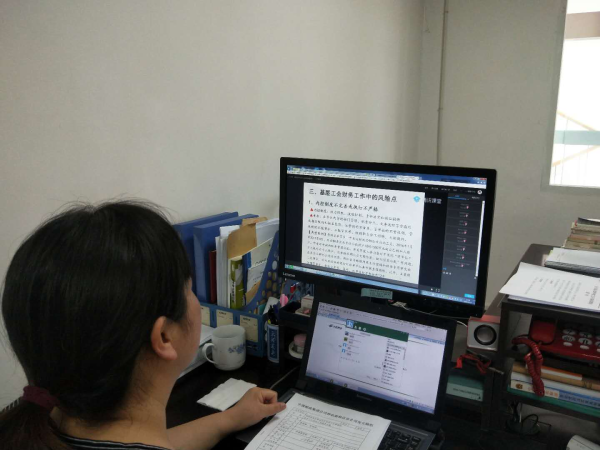 培訓班通過“騰訊課堂”平臺,以網(wǎng)上培訓模式進行。課程涵蓋2020年全國“兩會”精神解讀、《中國工會章程》解讀、工會常用法律法規(guī)政策解讀等。培訓課中,老師通過豐富的案例和淺顯易懂的表達,向大家講授規(guī)范基層工會組織建設(shè)、工會財務(wù)管理等內(nèi)容,解析工會財務(wù)工作中的風險點及常用法律法規(guī)知識。