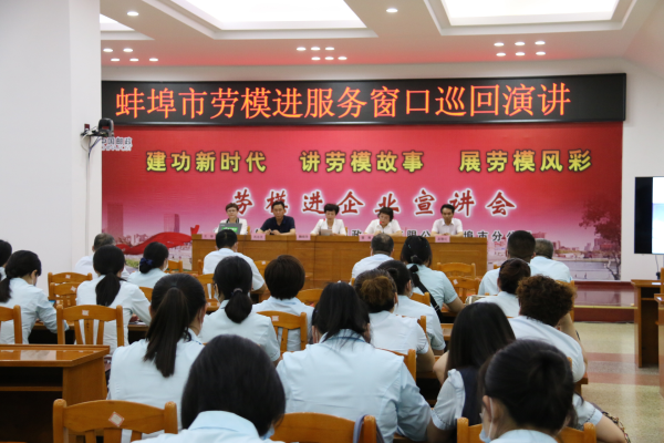 6月29日下午,蚌埠市“勞模進(jìn)窗口”巡回演講活動(dòng)在蚌埠市郵政分公司成功舉辦。省勞動(dòng)模范、中國(guó)好人、合肥百大集團(tuán)蚌埠百貨大樓悅?cè)R迪品牌店長(zhǎng)、金牌內(nèi)訓(xùn)師王珍作專題演講。市總工會(huì)四級(jí)調(diào)研員鞠曉萍出席并講話,70余名窗口服務(wù)人員參加活動(dòng)。