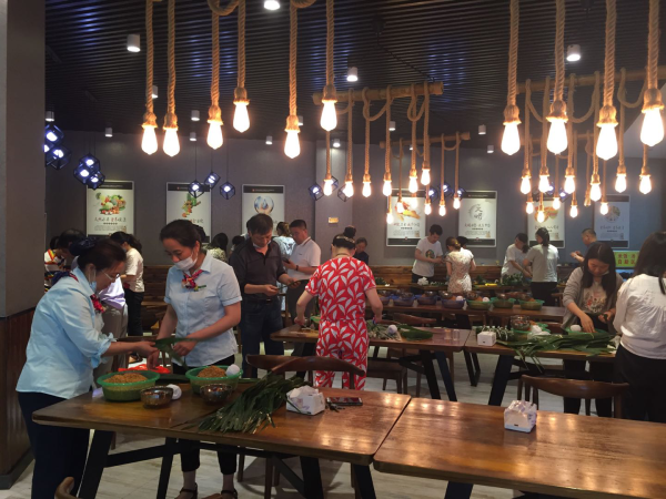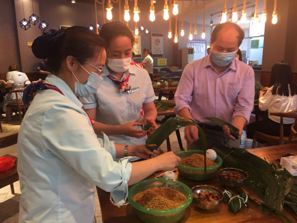 30余名員工齊上陣,將準(zhǔn)備好的粽葉、糯米、紅豆、鮮肉、香腸、線繩等食材整齊地擺放在桌子上。高手們巧手翻飛,紛紛露出看家本領(lǐng),三角粽、牛角粽、錐子粽,形態(tài)各異。新手積極學(xué)習(xí)如何包粽子、卷粽葉、放米、捆扎,談笑中大家體驗著制作美食的快樂。很快,一個個滿懷情誼的粽子包好了。 此次活動不僅豐富了個人文化生活,讓大家感受到了濃濃的節(jié)日氛圍,還增進了員工們的凝聚力和向心力,提升了工作活力。