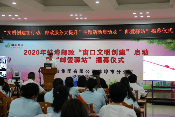 7月9日上午,蚌埠郵政“文明創(chuàng)建在行動(dòng),郵政服務(wù)大提升”主題活動(dòng)既“郵愛(ài)驛站”揭幕儀式在公司會(huì)議室隆重舉行。蚌埠市總工會(huì)副主席孫創(chuàng)、市公司總經(jīng)理許峰出席儀式,東區(qū)分公司、西區(qū)分公司、寄遞事業(yè)部50余名員工代表參加了啟動(dòng)儀式,各縣分公司通過(guò)電視電話會(huì)議的形式同步進(jìn)行。