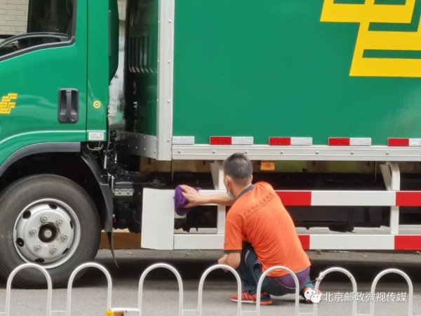 據(jù)了解,照片中擦拭郵車的員工叫左占全,是北京市郵區(qū)中心局運(yùn)輸中心一分車隊(duì)的駕駛員。當(dāng)天,左師傅駕車出班途中遇雨,車身濺上了許多泥點(diǎn)子。借著在牛街營(yíng)業(yè)部門前等待出口郵件裝車的間隙,他便拿起抹布認(rèn)真地將車擦拭干凈,一時(shí)間郵車光可鑒人。