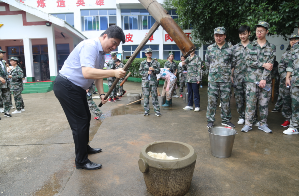 隨后,開始了打麻糍果活動,李軍、金雪發(fā)與學(xué)員紛紛動手參與,用木杵反復(fù)地敲打、攪拌糯米,不一會兒,熱騰騰的麻糍果新鮮“出爐”了。大家一邊吃著“勞動果實(shí)”,一邊談笑風(fēng)生,享受著歡樂的時光。
