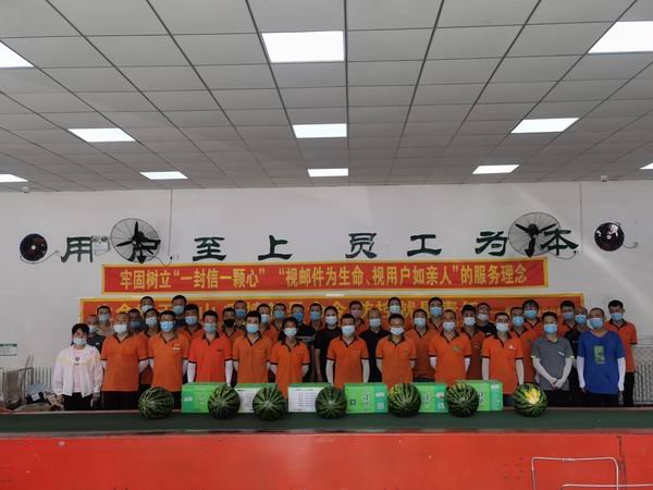 為切實做好夏季防暑降溫工作,維護高溫期間一線職工的身體健康,確保生產(chǎn)經(jīng)營的順利進行,7月17日,磐石市分公司黨委書記王宇、工會主席岳剛、副總經(jīng)理張連冠帶著冰絲袖、西瓜、綠茶等防暑降溫物品來到寄遞一線,為辛勤工作的員工帶去了一份問候,送去了一份清涼。