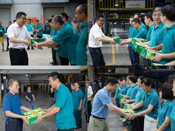 入伏以來(lái),連日高溫多雨,7月22日,時(shí)值大暑。合肥郵區(qū)中心局黨委書記、總經(jīng)理錢志雄帶領(lǐng)局班子成員及相關(guān)部門負(fù)責(zé)人一行深入生產(chǎn)單位親切慰問(wèn)堅(jiān)守在暑期防汛一線的職工,為大家送上酸梅湯、蘇打水等防暑降溫飲品。
