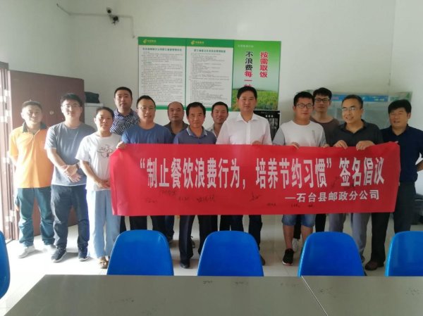 為進(jìn)一步貫徹落實(shí)習(xí)近平總書記對(duì)制止餐飲浪費(fèi)行為作出的重要指示,根據(jù)市分公司《關(guān)于貫徹落實(shí)習(xí)近平總書記重要指示精神 帶頭制止餐飲浪費(fèi) 切實(shí)培養(yǎng)節(jié)約習(xí)慣的通知》(池郵分黨〔2020〕73號(hào))文件要求,石臺(tái)縣分公司9月9日上午組織縣公司廣大職工開展“制止餐飲浪費(fèi)行為,