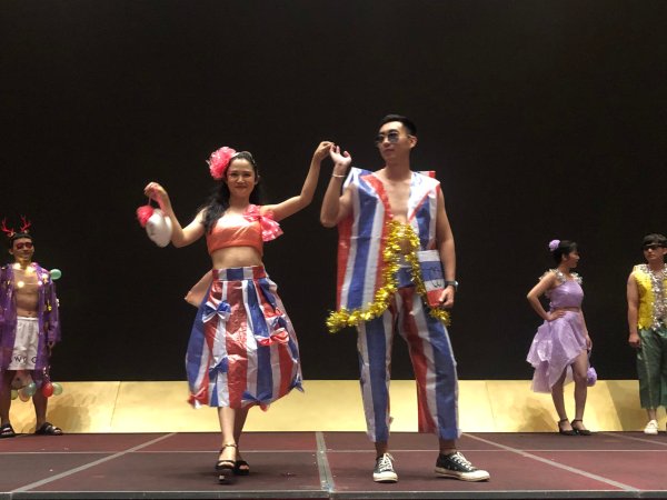 下午15:00,時裝創(chuàng)意秀正式拉開序幕,各參展團(tuán)隊依次登臺展現(xiàn)他們別出心裁的服裝設(shè)計和精心編排的表演?!霸O(shè)計師”們大膽創(chuàng)意,員工模特自信大方展示,每一套服裝都充分展現(xiàn)出設(shè)計者獨(dú)特新穎的構(gòu)思?,F(xiàn)場精辟的解說詞,更是讓大家了解到設(shè)計者的材料、創(chuàng)作特色和創(chuàng)作意圖。展出過程中還穿插了舞蹈、歌曲、環(huán)保知識小競答等內(nèi)容,現(xiàn)場氣氛熱烈。
