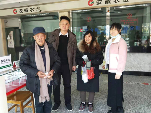 1月2日,在宿松縣某銀行大廳內(nèi),一位大爺握著宿松縣分公司投遞員劉鵬的手連聲說著感謝。原來,當(dāng)天上午,這位大爺在銀行ATM機(jī)上取款時(shí),不小心將3000元現(xiàn)金遺失在了銀行門口。