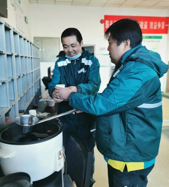 這幾天,寒潮入侵 北京迎來入冬以來最寒冷的天氣 為了讓廣大投遞員感受到溫暖 朝陽區(qū)分公司工會準備了姜茶,由各基層單位部門工會主席提前為大家熬制,讓歸班的投遞員一進門就能喝到暖暖、甜甜的姜茶,身暖心暖,工作起來更有干勁。