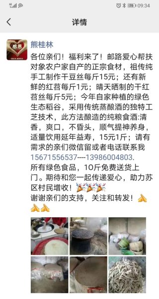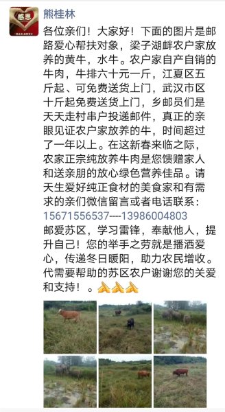 “各位親們,福利來了!郵路愛心幫扶對象農(nóng)戶家中自產(chǎn)的正宗食材可以訂購了,祖?zhèn)骷兪止ぶ谱鞲啥菇z,每斤15元……”“新春佳節(jié)來臨之際,梁子湖畔農(nóng)家放養(yǎng)牛肉是您饋贈親朋好友的佳品…… ”春節(jié)臨近,年味漸濃,全國勞動模范、2020年最美職工、武漢市江夏區(qū)郵政分公司鄉(xiāng)郵員熊桂林的朋友圈格外“熱鬧”。趁著家家戶戶忙著置辦年貨之際,這位鄉(xiāng)郵員成為郵路上農(nóng)戶原生態(tài)農(nóng)產(chǎn)品的“代言人”,為鄉(xiāng)親們辛苦勞作的成果賣力“吆喝”。