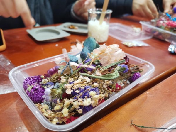 現場氣氛十分活躍,在專業(yè)老師的指導下,大家挑選自己喜歡的干花,運用各種天然素材,將創(chuàng)意和心意融入蠟牌之中。經過簡單有趣的工序,DIY出一塊塊可掛、可擺、可賞,獨一無二的香薰蠟牌。