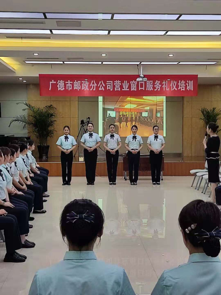 在近日廣德市分公司營業(yè)窗口服務(wù)禮儀提升培訓(xùn)活動中,學(xué)員們配合相對應(yīng)的身體動作,一遍又一遍地重復(fù)練習(xí)這些禮貌用語。 為進一步提高提升營業(yè)網(wǎng)點規(guī)范服務(wù)水平,塑造郵政窗口員工良好的儀容儀表和精神面貌,打造品牌形象,安徽省廣德市分公司分管舉辦服務(wù)禮儀培訓(xùn)班,分公司營業(yè)網(wǎng)點支局長、營業(yè)員、大堂經(jīng)理等65人參加培訓(xùn)。 在兩個晚上的培訓(xùn)中,培訓(xùn)老師從儀容儀表、形體禮儀、微笑訓(xùn)練、場景演練等多個環(huán)節(jié)進行了全面系統(tǒng)地講解,并結(jié)合員工日常服務(wù)中出現(xiàn)的一些常見問題,有針對性的對男女學(xué)員站、坐、行、走等服務(wù)禮儀進行強化培訓(xùn)。老師與員工的互動活動,將現(xiàn)場熱情多次推向高潮。 此次培訓(xùn)是廣德市分公司積極落實《安徽省“客戶體驗三年提升工程”工作方案》要求,切實提升營業(yè)窗口服務(wù)質(zhì)量的生動實踐。該分公司將持續(xù)通過擴大培訓(xùn)覆蓋面,加大培訓(xùn)頻率,不斷增強全員服務(wù)意識,使廣德郵政營業(yè)網(wǎng)點的服務(wù)水平邁上一個新臺階。