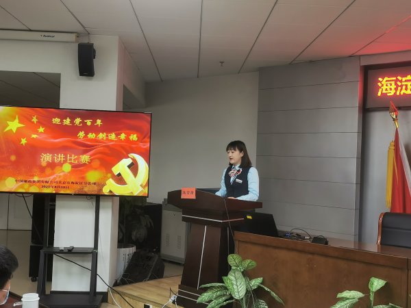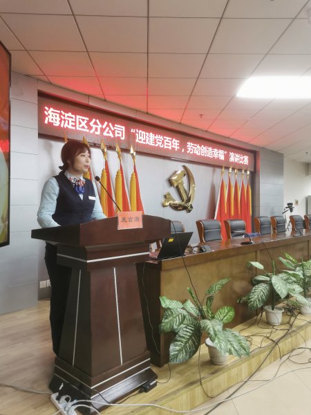 4月12日下午,海淀區(qū)分公司工會舉辦“迎建黨百年·勞動創(chuàng)造幸?!敝黝}演講比賽,由各部門工會選拔的15名選手參加了本次比賽,其中有包括理財經(jīng)理、攬投員等各個崗位的一線職工,還有剛剛步入工作崗位的新職工。