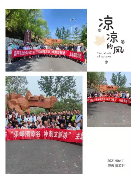 為豐富職工文化生活,培養(yǎng)職工集體榮譽感和積極進取精神,北京郵政昌平區(qū)分公司工會于6月7日、9日、11日分三個批次,組織200余名職工到密云清涼谷開展“樂郵清涼谷 沖刺立新功”主題職工春游活動。