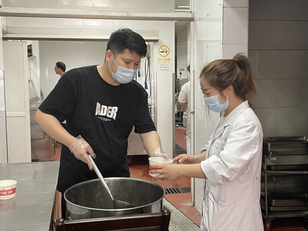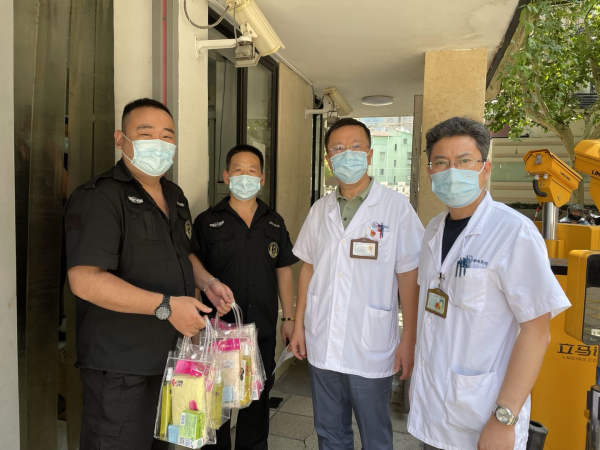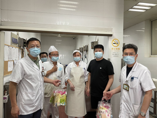 驕陽似火、赤日炎炎,上海郵電醫(yī)院的員工們堅(jiān)持戰(zhàn)斗在防病治病的第一線。近日,上海郵電醫(yī)院院長、黨委書記闕挺,副院長、院工會(huì)主席胡桑一行,實(shí)地走訪了針灸科、食堂、門衛(wèi)、修理組等高溫崗位,親切地問候了在場的工作人員,叮囑他們?cè)诠ぷ髦幸⒁獗Wo(hù)好自身的健康,并為他們送上了一份份防暑降溫用品。并且叮囑管理人員要落實(shí)員工防暑降溫的各項(xiàng)措施,合理安排和調(diào)整工作時(shí)間,切實(shí)保障好員工的身心健康。在院領(lǐng)導(dǎo)關(guān)心下,食堂在高溫天為員工提供綠豆湯解暑,受到廣大員工的歡迎。