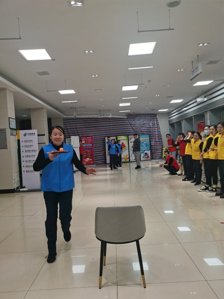 10月26日晚7點在營業(yè)大廳內(nèi),支局全體員工及其家屬們踴躍參加,20余人分成3個參賽小隊,選出了隊長,發(fā)表了參賽宣言,共參加了踩氣球、乒乓球接龍、接羽毛球三個比賽項目。活動現(xiàn)場氣氛熱烈,激發(fā)了員工們的青春活力,增進了“革命”友情。