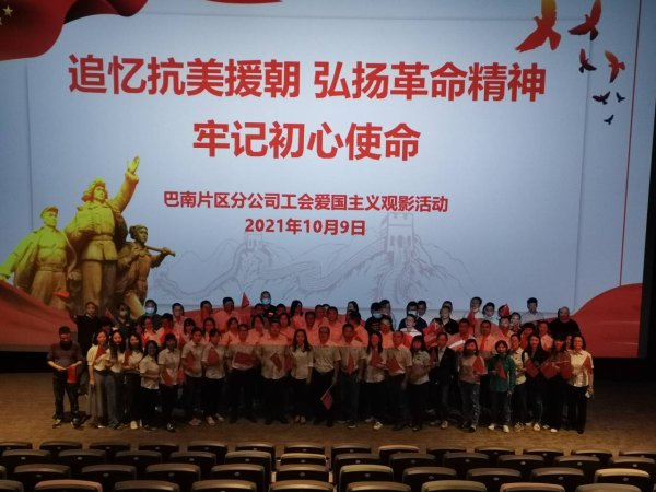 10月9日下午,巴南片區(qū)分公司黨委與工會聯(lián)合組織各黨支部、工會小組觀看抗美援朝戰(zhàn)爭題材影片《長津湖》,進(jìn)一步厚植全體黨員群眾的愛國情懷。