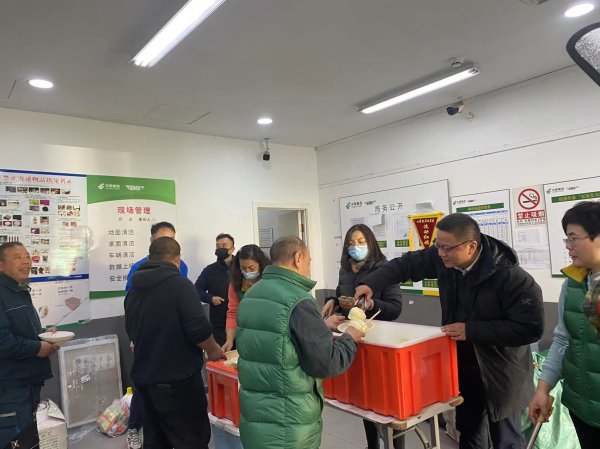 彭虎韜總經(jīng)理、楊興威副總經(jīng)理親自來到牛街營業(yè)部、馬連道投遞部、營業(yè)部慰問,為150余名職工盛飯,盛湯,并囑咐投遞員們按時吃飯,注意身體?,F(xiàn)場沉浸在一片溫馨熱鬧的氣氛中,其樂融融。