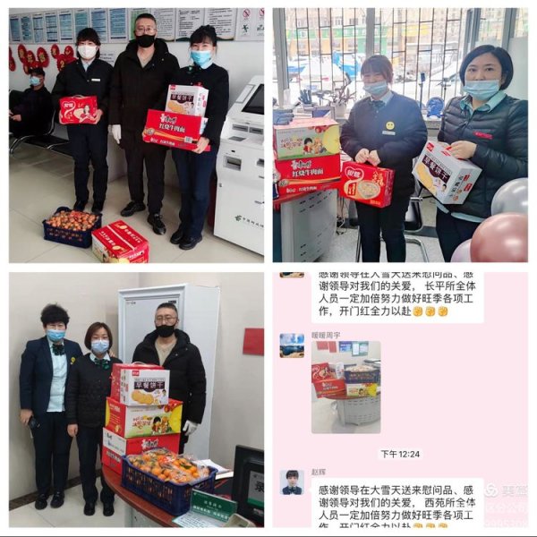 慰問結(jié)束后,區(qū)分公司立即安排專人將市分公司發(fā)放的慰問品及祝福送到一線網(wǎng)點(diǎn),各網(wǎng)點(diǎn)紛紛表示堅(jiān)定發(fā)展信心,以飽滿的熱情和戰(zhàn)斗力投入到工作中,繼續(xù)發(fā)揚(yáng)為客戶服務(wù)孺子牛、創(chuàng)新發(fā)展拓荒牛、艱苦奮斗老黃牛的“三牛精神”,只爭朝夕加油干,全力以赴向前沖,決戰(zhàn)決勝“開門紅”!