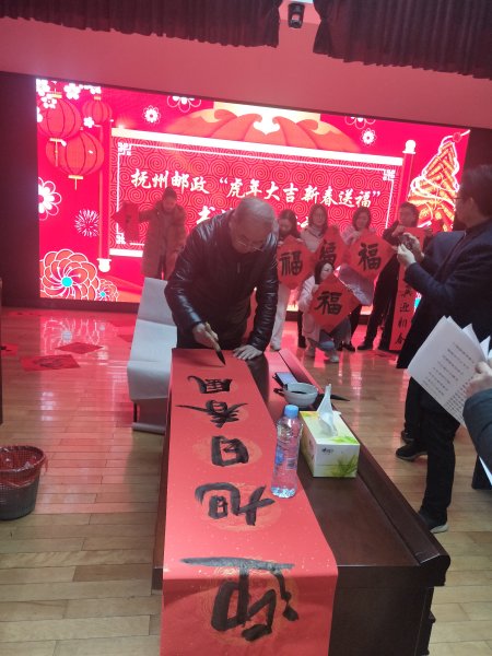 本次活動(dòng)邀請(qǐng)了中書(shū)協(xié)會(huì)員周俊、何華,省書(shū)協(xié)會(huì)員張山東、饒峰四位老師現(xiàn)場(chǎng)揮毫潑墨,為即將來(lái)臨的新春佳節(jié)營(yíng)造喜慶祥和的節(jié)日氣氛,為廣大郵政職工送上年味十足的新春祝福。