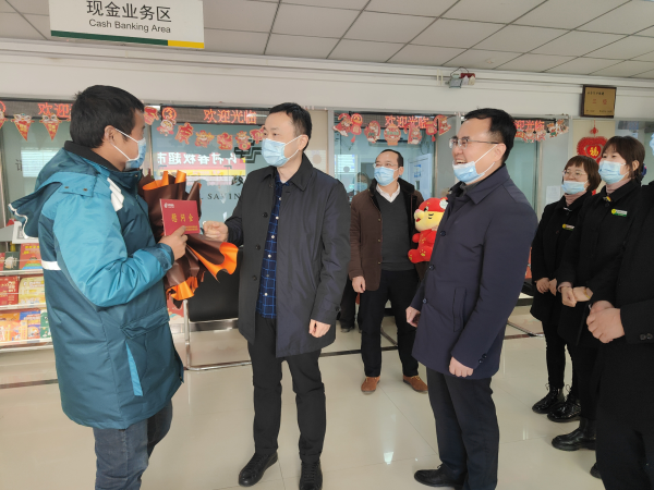 2022年1月18日,新春佳節(jié)即將來臨之際,省分公司黨委委員、副總經(jīng)理陳平攜市場部總經(jīng)理嚴正柱、金融業(yè)務部副總經(jīng)理吳彩華及工會相關人員一行來到黃山市黃山區(qū)、歙縣兩地進行春節(jié)前“送溫暖”慰問和旺季網(wǎng)點金融發(fā)展、寄遞開門紅督導。