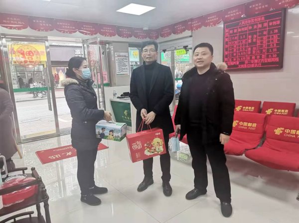在建設(shè)西路營業(yè)所,李捷平為一線網(wǎng)點(diǎn)員工送去慰問禮品和新春祝福,感謝他們?yōu)閷?shí)現(xiàn)撫州郵政高質(zhì)量發(fā)展所作的貢獻(xiàn),并悉心詢問金融旺季發(fā)展情況,強(qiáng)調(diào)要發(fā)揮好郵政最大的協(xié)同優(yōu)勢,搶抓旺季市場,突出金融+文傳等多專業(yè)融合,努力實(shí)現(xiàn)各專業(yè)開門紅、全面紅。同時,他叮囑大家要做好防寒保暖,特別是春節(jié)臨近,人口流動性加大,更要做好安全防范工作以及個人防護(hù),確保疫情防控和旺季發(fā)展兩不誤。