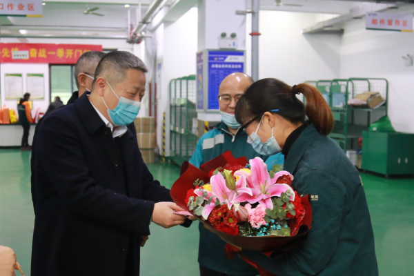 楊全對(duì)雨雪天仍?shī)^戰(zhàn)在一線的攬投工作人員送去慰問(wèn),提前送上新春祝福。提醒大家注意保暖和行車安全,扎實(shí)做好疫情防控和國(guó)際郵件規(guī)范處理工作,確保用戶和自身身體健康安全。要求要統(tǒng)籌做好春節(jié)期間作業(yè)組織工作,有效應(yīng)對(duì)末端代投點(diǎn)減少帶來(lái)的投遞壓力,確保旺季平穩(wěn)、有序開展。