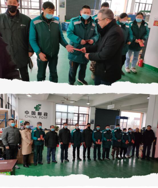 1月24日上午,長豐縣總工會到長豐郵政,給廣大郵政職工送來關(guān)懷和慰問??h總工會主席率領(lǐng)縣總工會一行為長豐郵政投遞人員送上了6000余元春節(jié)慰問金,專項慰問疫情期間堅守一線的郵政投遞員。在慰問現(xiàn)場,主席親切叮囑郵政職工,疫情當前,重任在肩,要一如既往繼續(xù)發(fā)揚戰(zhàn)斗精神,不放松、不懈怠,做好生產(chǎn)服務(wù)工作,齊心協(xié)力打好疫情防控阻擊戰(zhàn)。
