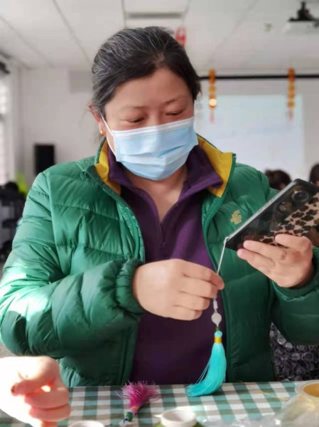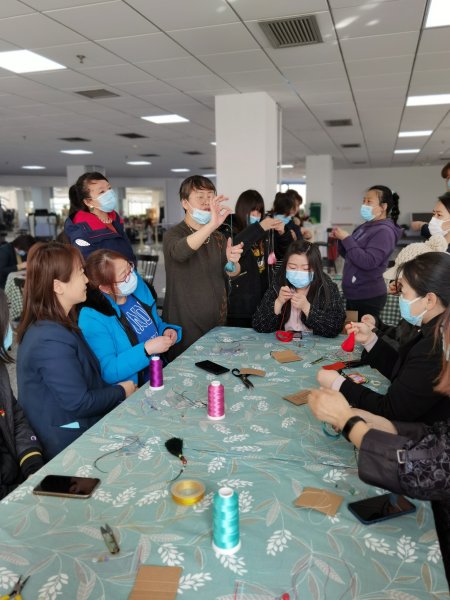 在近兩個小時的時間里,女同胞們認真向老師學習著手工繩藝編織技藝,她們一個個細心制作,老師示范一步,大家跟著做一步。結(jié)繩看似簡單,其實每一個步驟都很關鍵,錯了一步就會失敗,幾個看似簡單的動作卻能編織出不同的繩結(jié),在老師不厭其煩的指導下,大家一步一步的反復摸索,現(xiàn)場氛圍很是熱鬧,來自各個支局互不相識的員工,從陌生到熟悉,從冷漠到搭把手,彼此之間相互交流,互相學習,手法逐漸嫻熟起來!一個小時左右,一個個編織緊密的流蘇制作完成,神奇的繩藝加上裝飾品的搭配,顯示出濃濃的中國風以它獨特的魅力征服了大家!難得的手工DIY機會讓大家樂在其中。“看我的流蘇完工啦”“我的也好了”聲音此起彼伏,女神們迫不及待迫不及待向在場的人展示自己的手工作品。