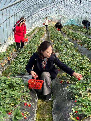 上午8點大巴車載著女職工們先來到肥西嚴店草莓采摘園開展草莓采摘活動。來到草莓采摘基地,大家在工作人員的帶領下,興奮又有序地進入大棚,三個一伙五個一群地開始摘草莓。翠綠的葉子、鮮紅欲滴的草莓、香甜的氣息讓大家心情格外舒暢,一邊摘草莓一邊互相交流,充分感受到清新的田園氣息,體驗了采摘草莓、品嘗鮮果的樂趣,陶醉在和煦的春風里。 簡單用完午餐后,大家繼續(xù)乘車來到了著名的肥西縣三河古鎮(zhèn)郵局。女同胞們仿佛回到了自己的娘家,興高采烈、爭先恐后地搶著參觀、拍照。