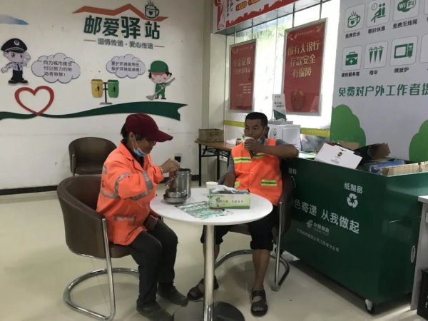 2020年7月,泰和縣總工會(huì)和泰和縣郵政分公司在城西郵政所建起了第一個(gè)“郵愛(ài)驛站”,配備了桌椅、飲水機(jī)、微波爐、報(bào)刊架、應(yīng)急藥品、電冰箱、充電寶等設(shè)備和物品,提供包括休息、就餐、Wi-Fi、手機(jī)充電、飲水、雨傘、應(yīng)急外敷藥品等服務(wù),并安排有專(zhuān)人負(fù)責(zé)日常管理和維護(hù)工作。