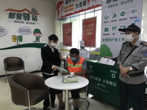 截至2022年5月20日,泰和縣分公司城西郵政所“郵愛(ài)驛站”已累計(jì)接待城管人員、交通警察、環(huán)衛(wèi)工人、外賣(mài)小哥等戶(hù)外勞動(dòng)者400余人/次。除了愛(ài)心服務(wù)外,“郵愛(ài)驛站”還為大家免費(fèi)講解反假幣、非法集資、投資理財(cái)?shù)冉鹑谥R(shí)和郵政業(yè)務(wù)知識(shí),受到l1戶(hù)外勞動(dòng)者和社會(huì)的一致好評(píng)。