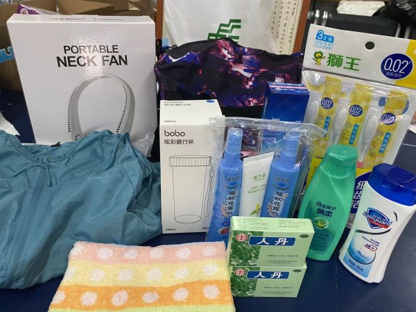 工會為項目組的26位職工配備了工會愛心慰問包,不僅有基礎的飲用水、洗漱用品,更有專為抵御炎熱天氣的便攜小風扇,防曬衣,還有防蚊蟲的驅蚊水以及品類齊全的藥包。