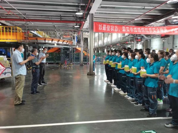 為切實保護職工的安全健康,有效做好暑期送清涼及疫情送關(guān)愛工作,市分公司張斌副總經(jīng)理、運管部金艇經(jīng)理在7月21日到航空郵件處理中心新順場地慰問堅守崗位奮戰(zhàn)在一線的員工們,在酷暑高溫階段為員工送上礦泉水、飲料、藿香正氣水、清涼油、龍虎舒醒精華露等防暑降溫物品。
