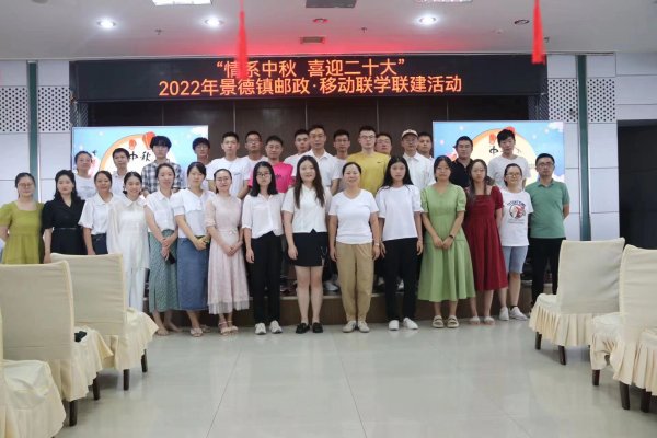 2022年9月9日下午,江西省景德鎮(zhèn)市郵政工會與市移動分公司工會聯(lián)合開展了“情系中秋,共繪團圓”聯(lián)學聯(lián)建活動。本次活動結合中秋佳節(jié),以“團圓、思鄉(xiāng)”為主線,推進郵政與移動戰(zhàn)略合作深度,展現雙方物流、信息流的資源優(yōu)勢,促進雙方業(yè)務融合、員工互學互鑒。